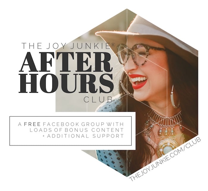 The Joy Junkie After Hours Club - A free Facebook group with loads of additional content and additional support